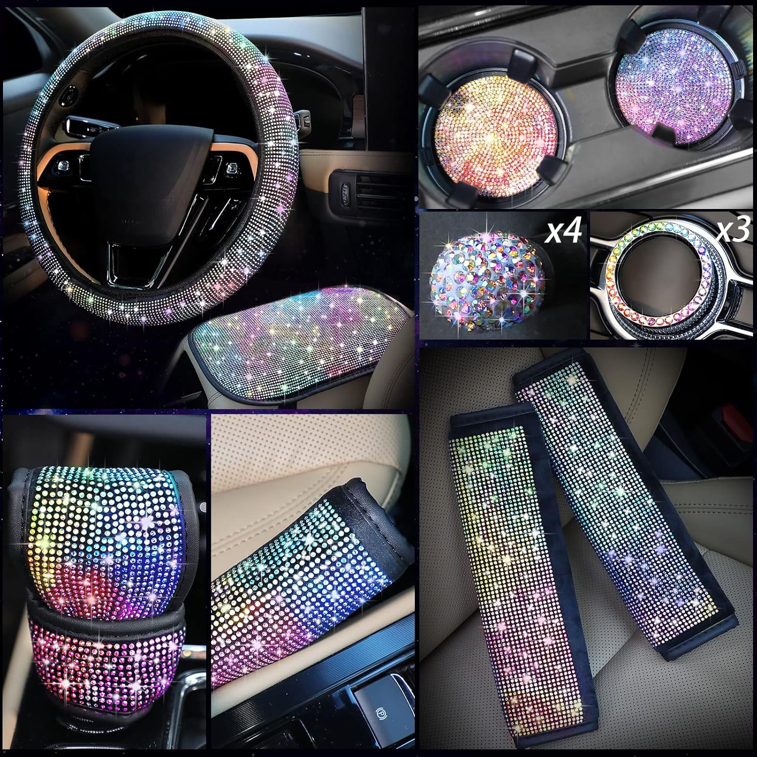 Be the first to review “Lilanglam 15 Pcs Bling Car Accessories Set, Include Rhinestone Steering Wheel Cover Crystal Handbrake Cover and Center Console Glitter Bling Car Accessories 3 Sticker Ring Emblem 4 Valve Stem Cap 2 Holder” Cancel reply