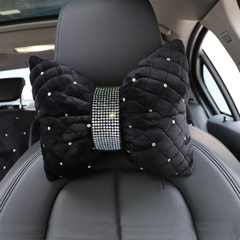 ITEM —– 1PC Fashion Diamond Bow Shape Car Neck Pillow Rhinestone Auto Headrest Seat Support Waist Pillows Car Interior Accessories