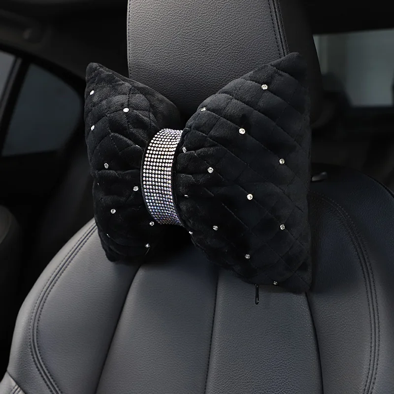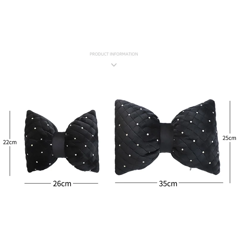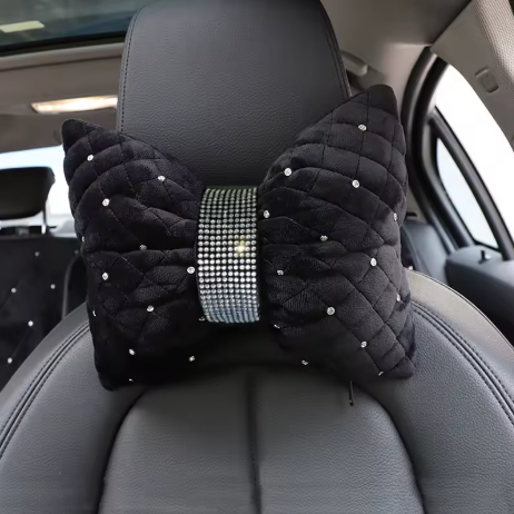 ITEM —– 1PC Fashion Diamond Bow Shape Car Neck Pillow Rhinestone Auto Headrest Seat Support Waist Pillows Car Interior Accessories