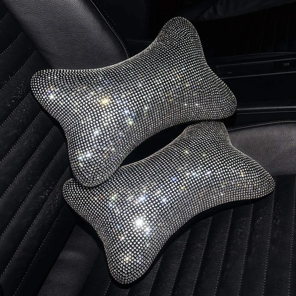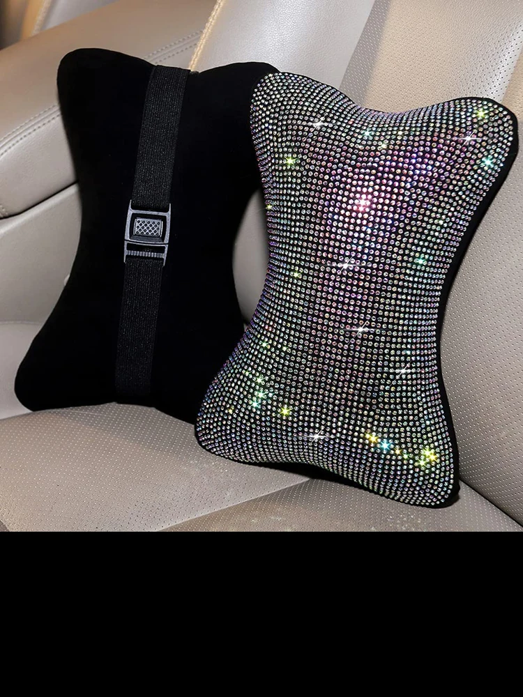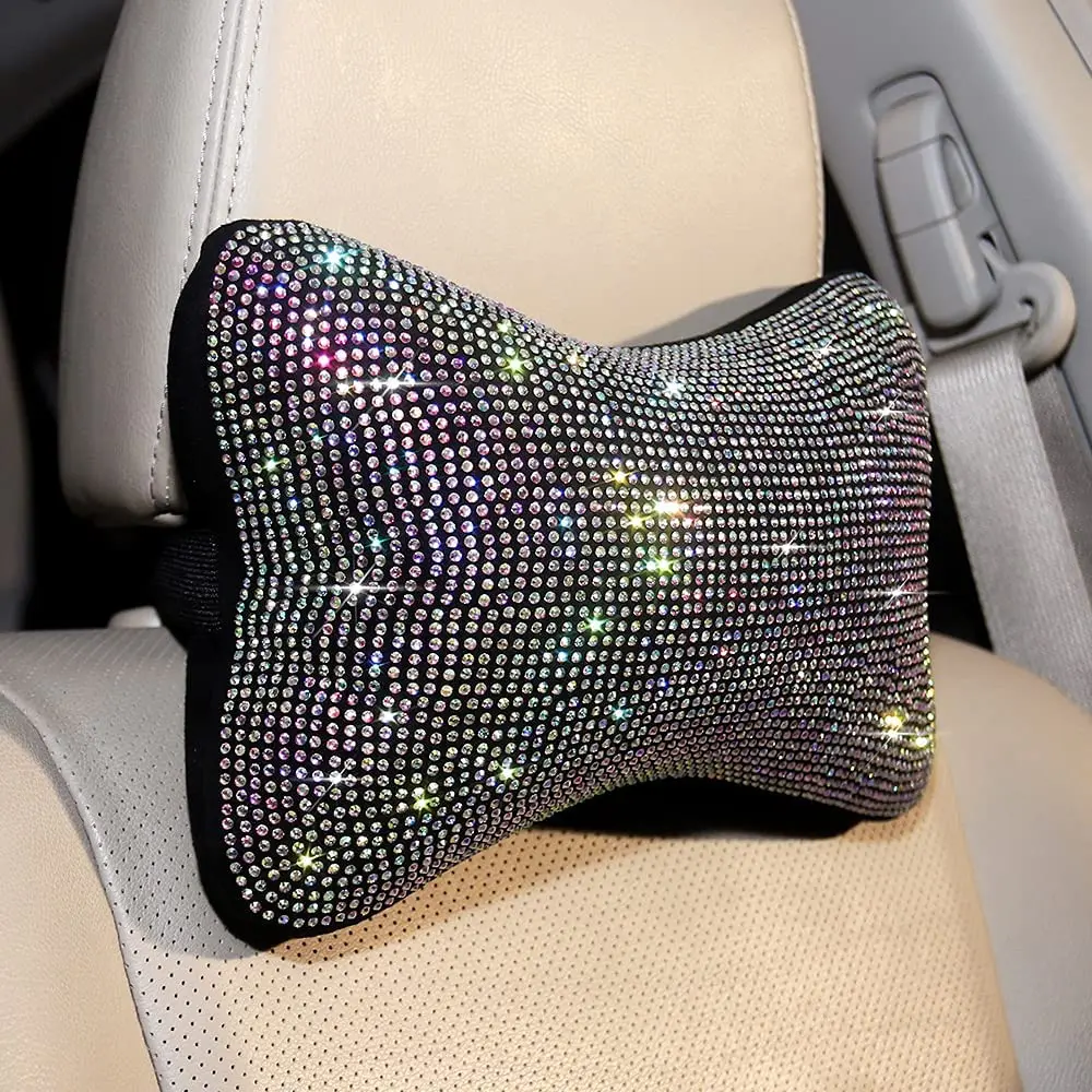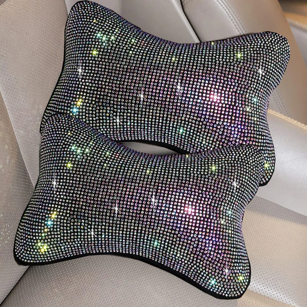 ITEM —–2 Pcs Diamond Bling Car Neck Pillow for Car Seat Driver Auto Seat Headrest Cushion Crystal Rhinestone Rainbow Bling Accessories