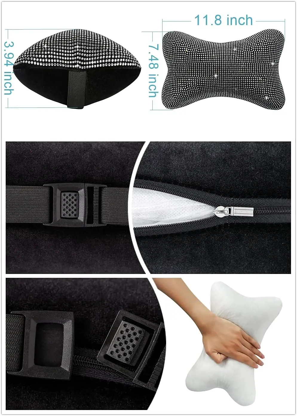 Fashion Style: This Head Neck Rest Pillow for car is studded with colorful crystal, brighter, stylish and elegant, not only a very good support for the neck, but also elegant interior decorations.