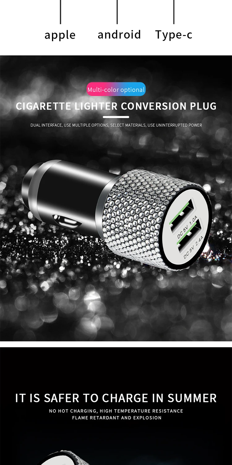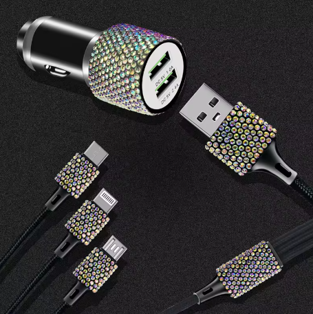 Be the first to review “Lilanglam 3 in 1 Car Charger 5V 2.4A Diamond Fast Charging Cable for iPhone Android Type-C Phone Car Bling Accessories For Woman” Cancel reply