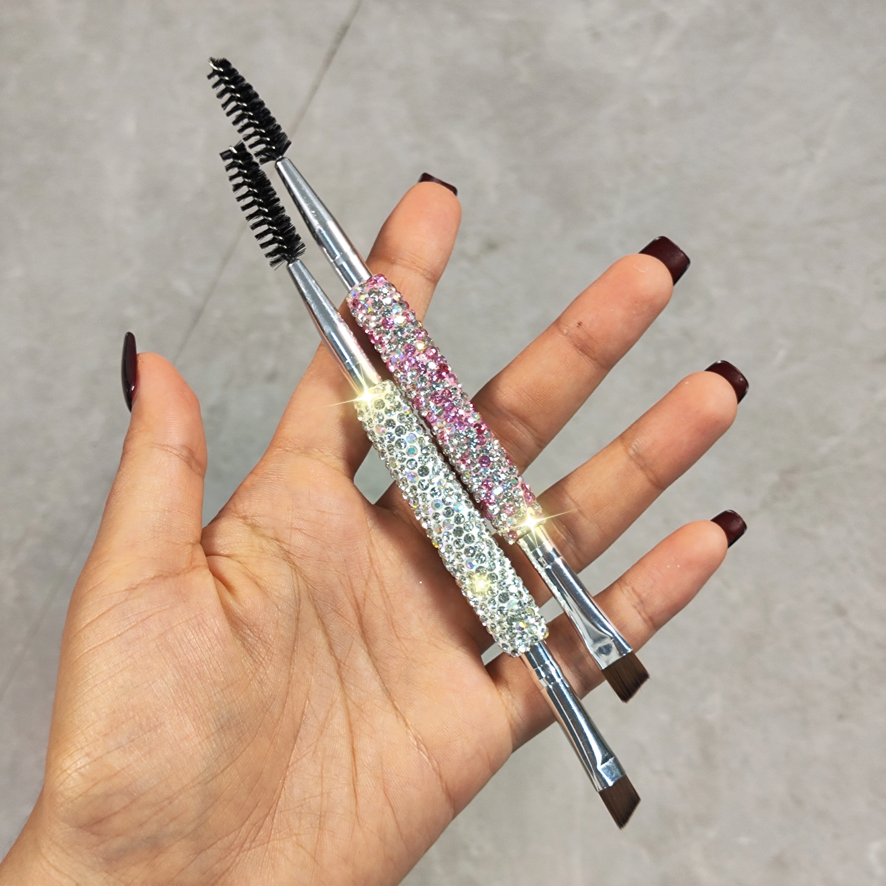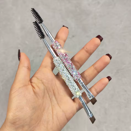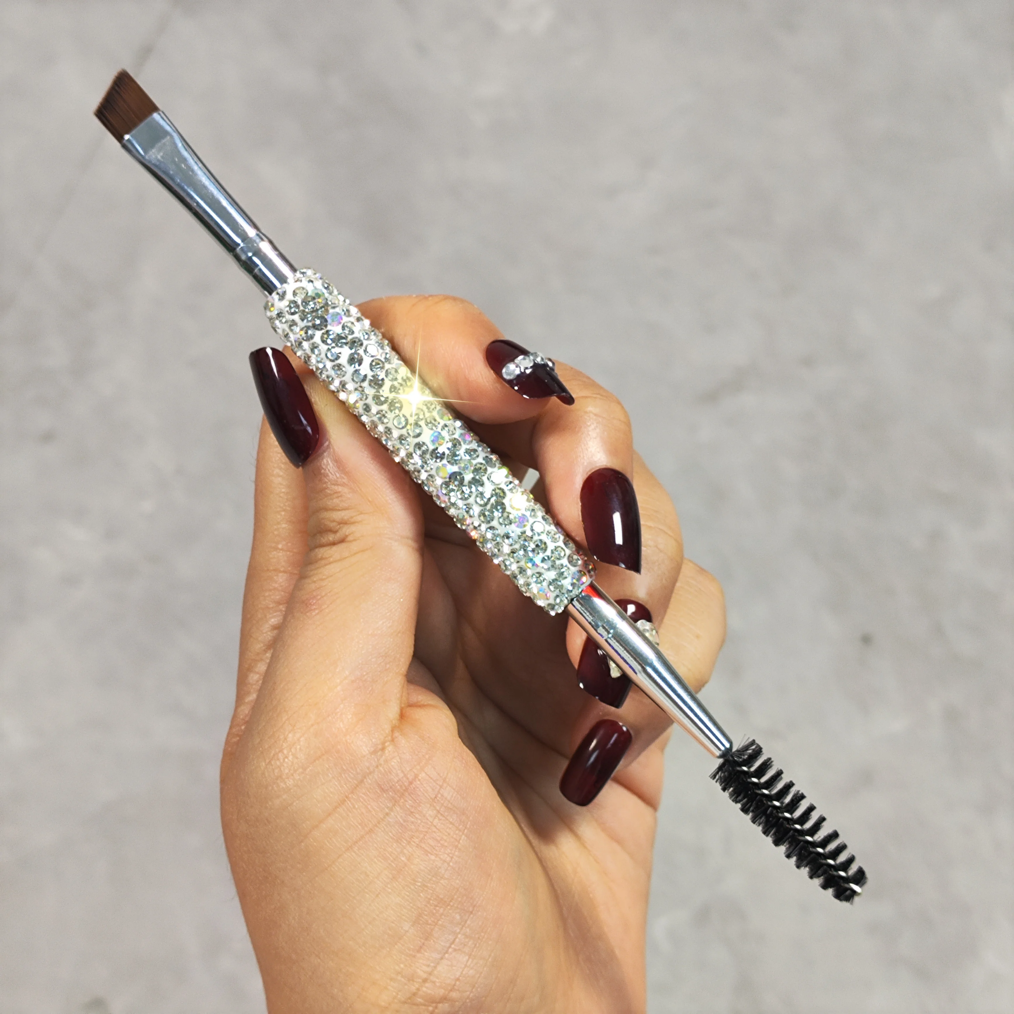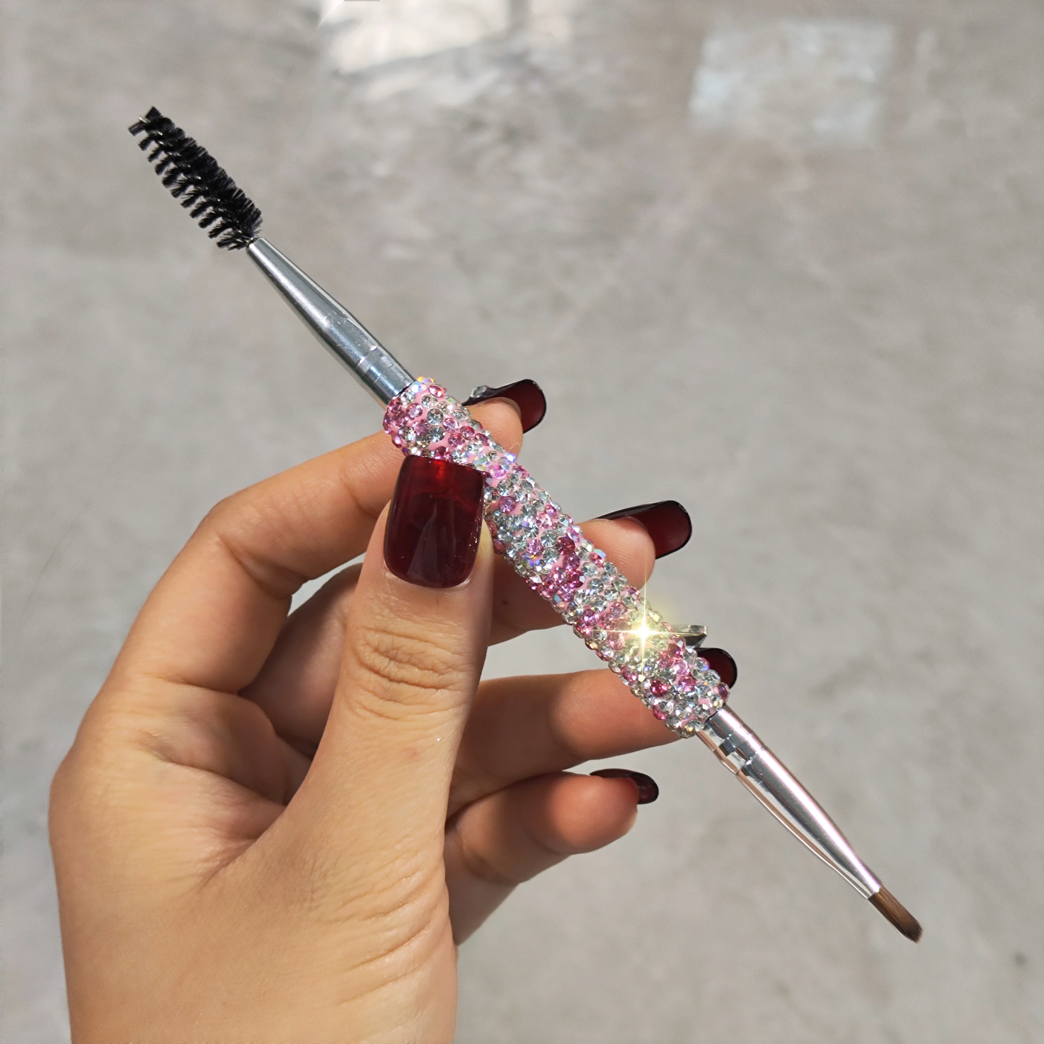 Use eyebrow brush eyelash curl double head 2-in-1, artificial diamond, travel portable