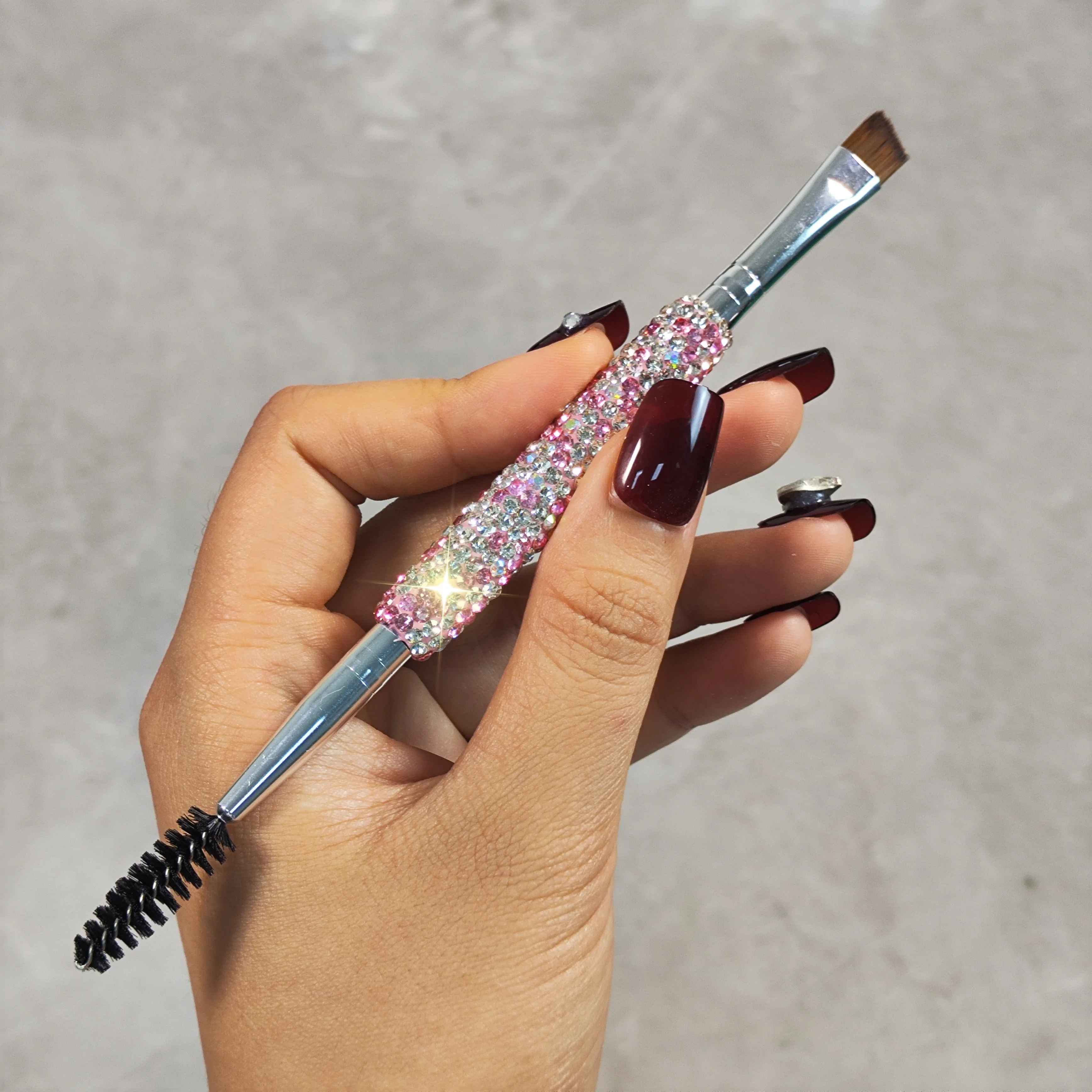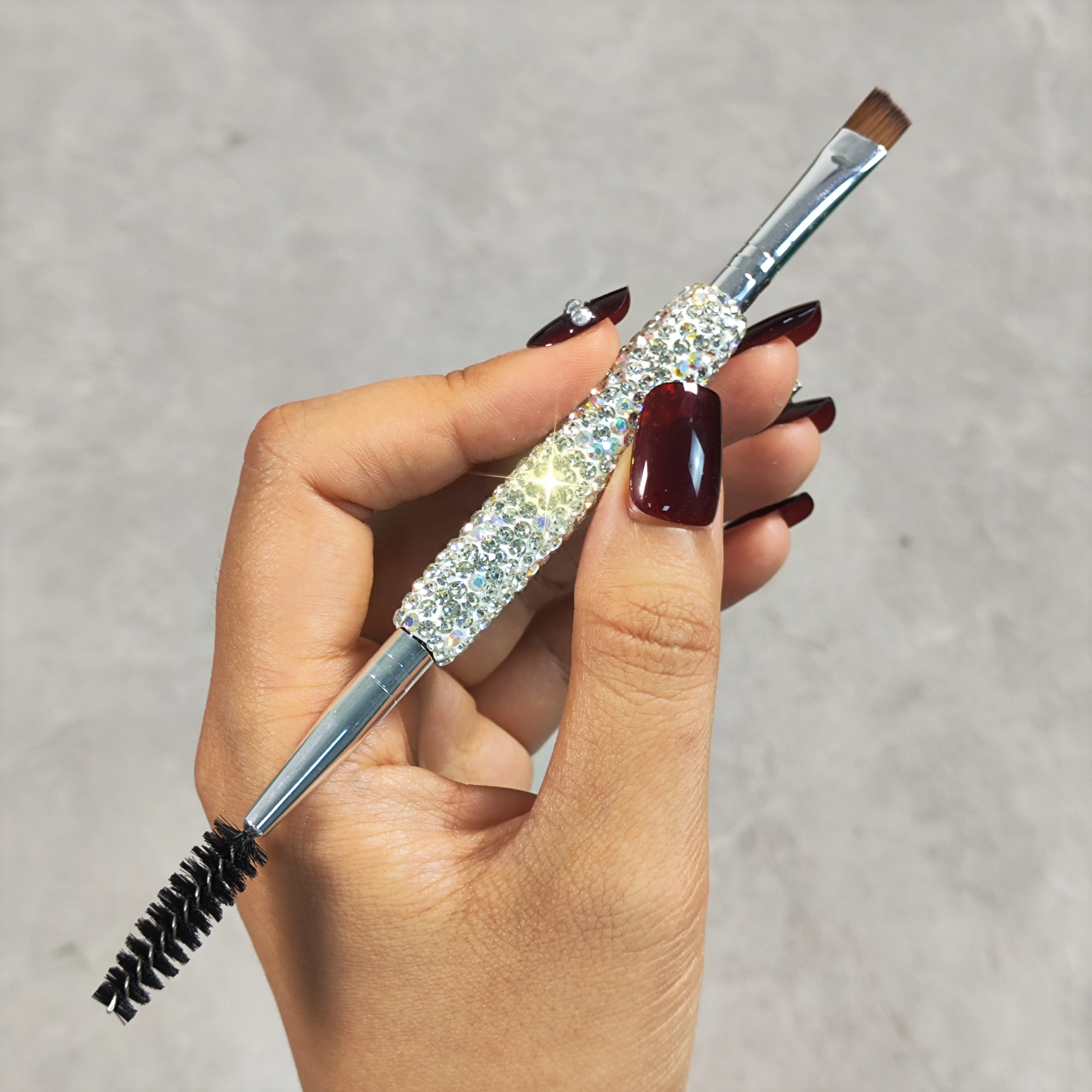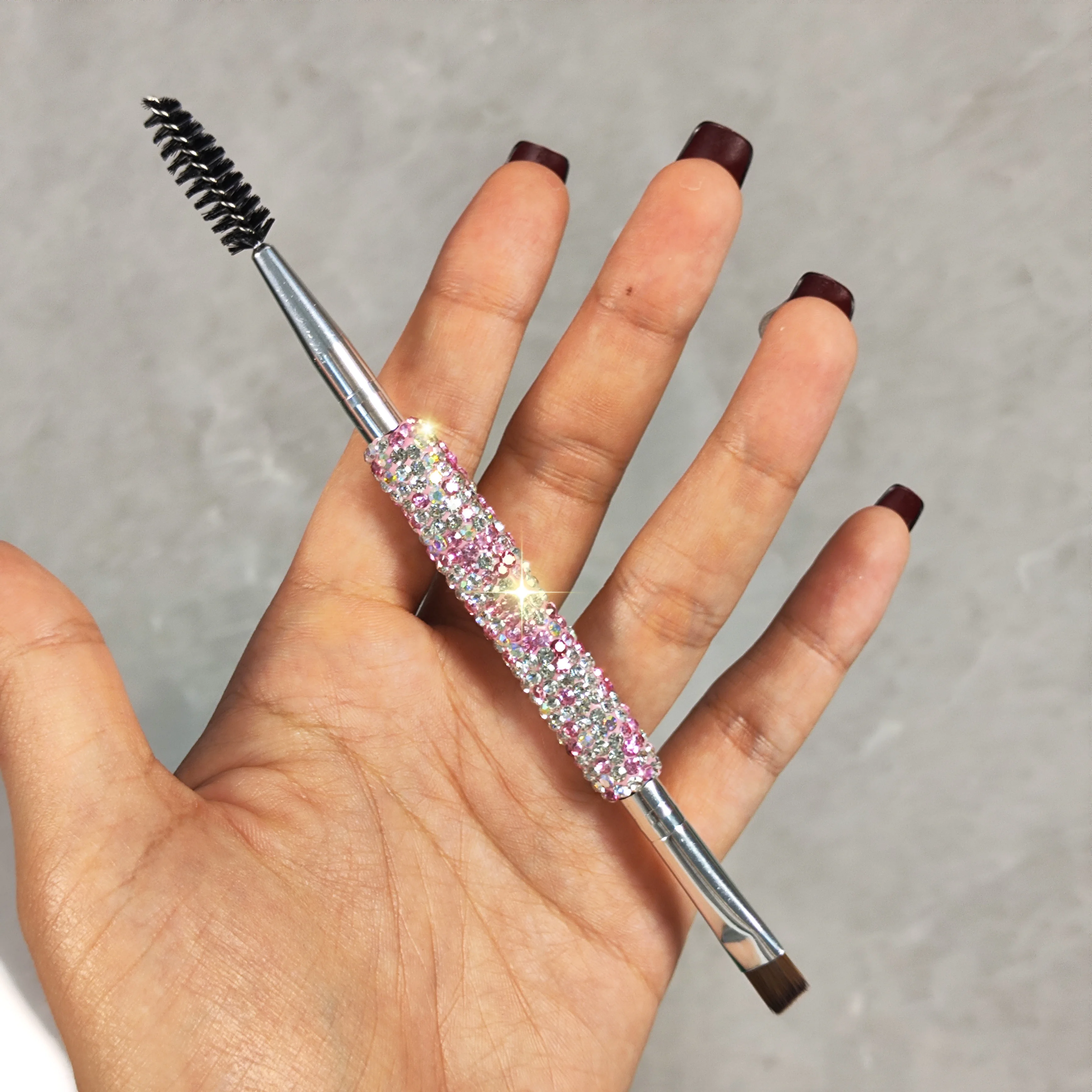 Use eyebrow brush eyelash curl double head 2-in-1, artificial diamond, travel portable