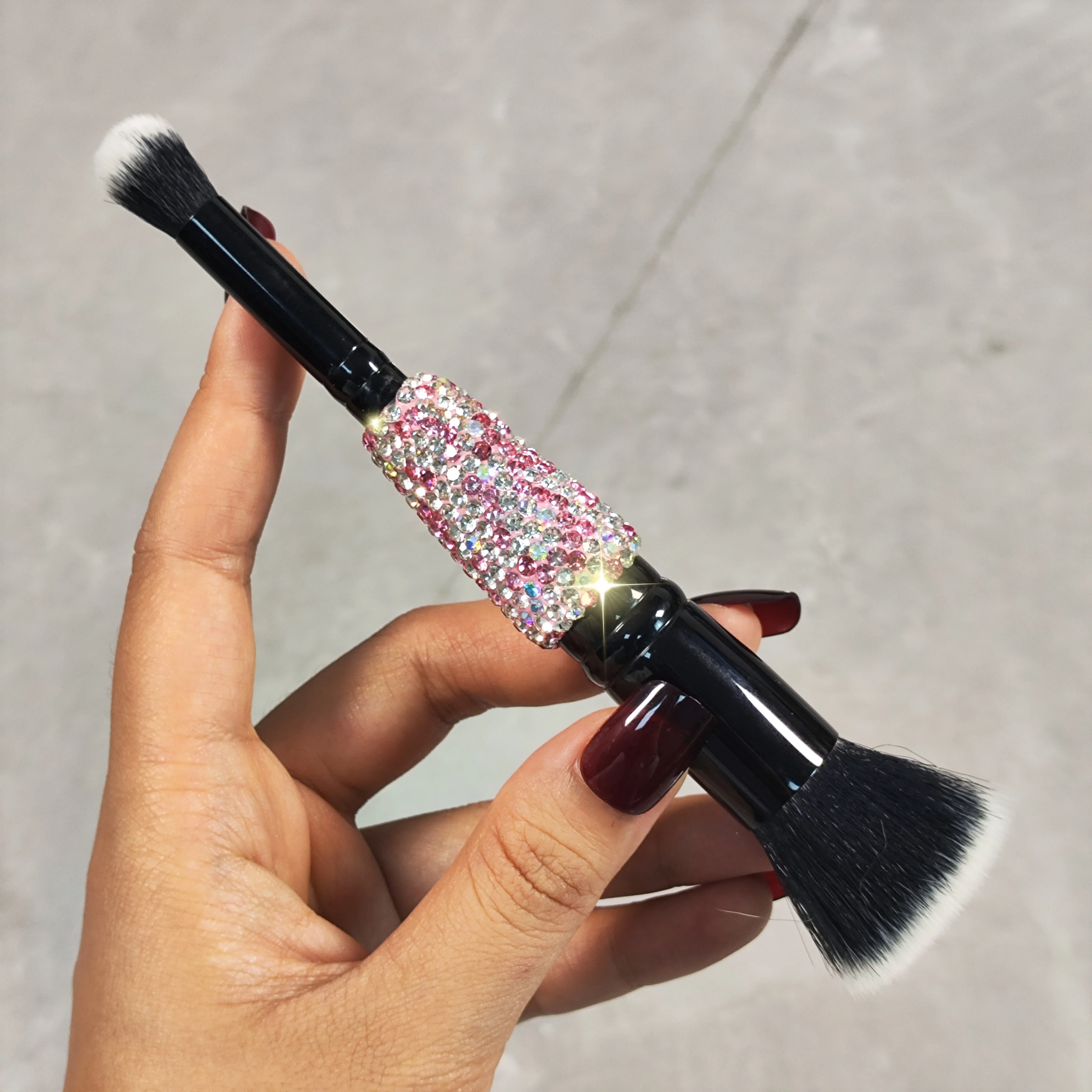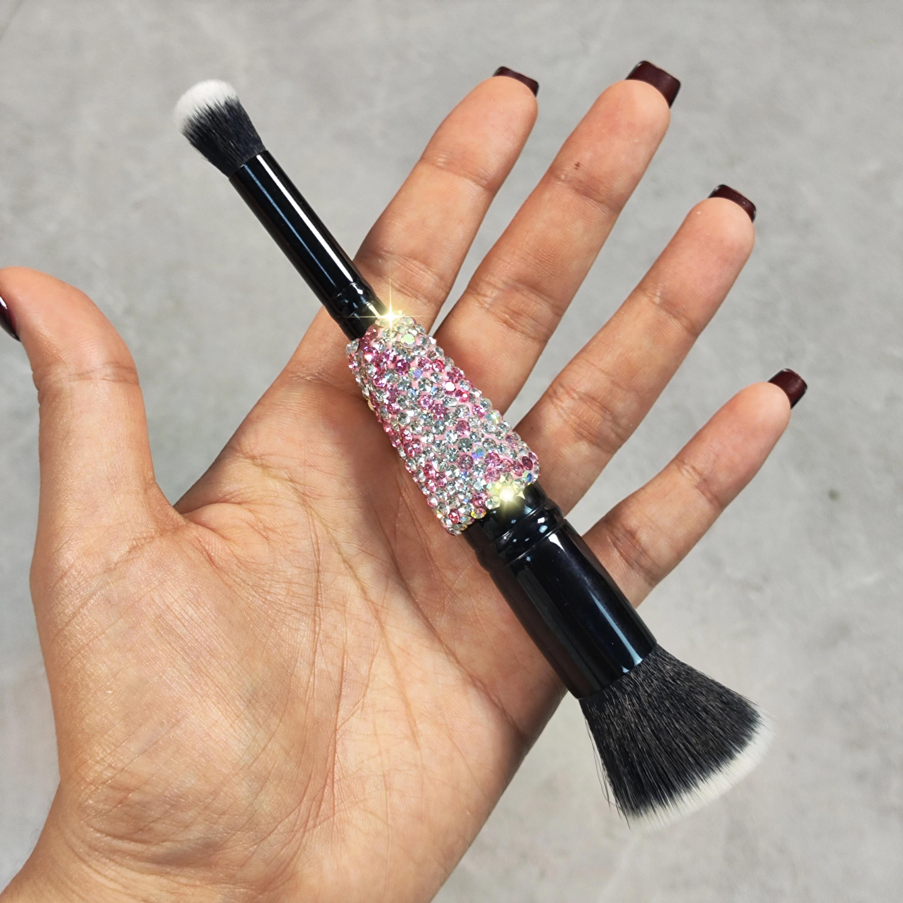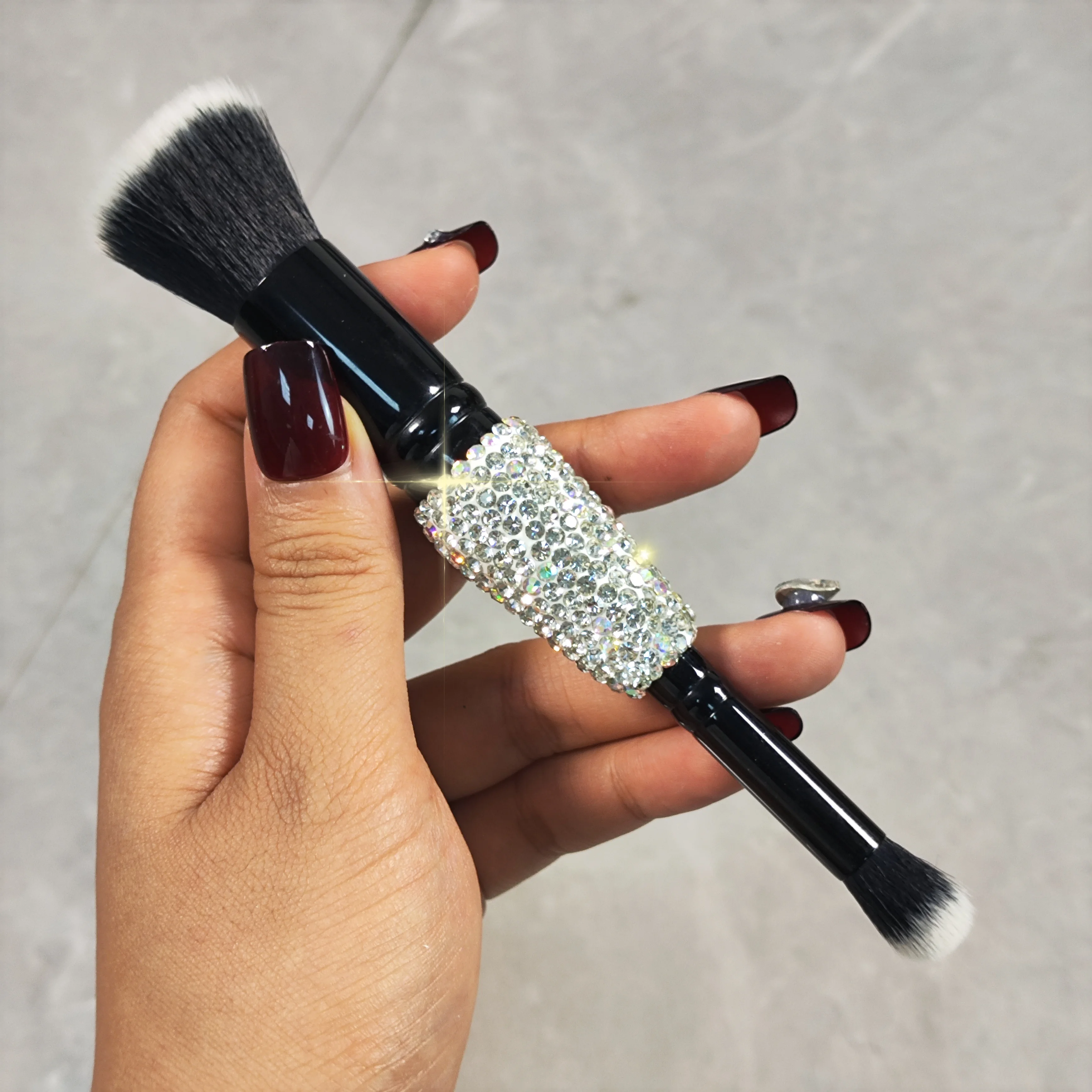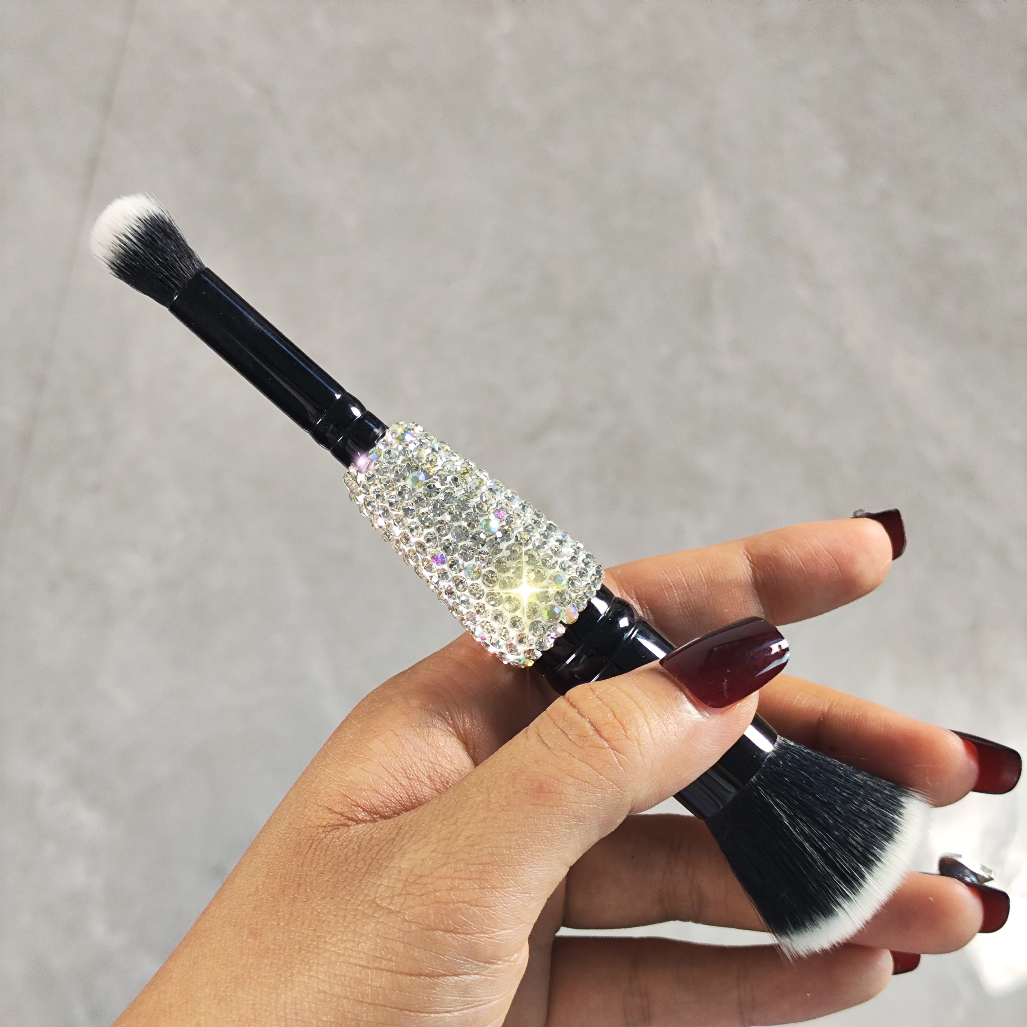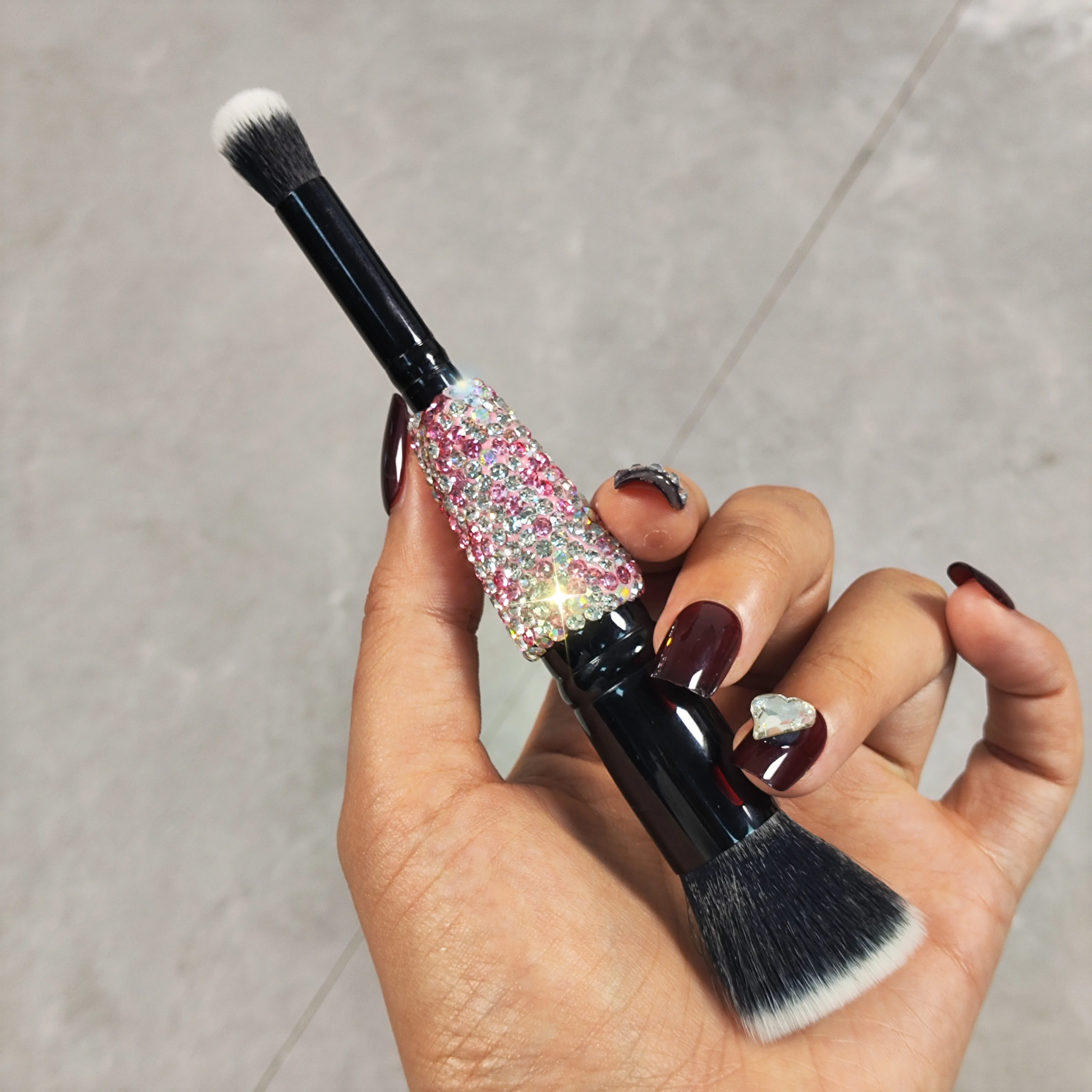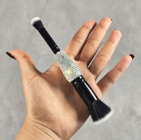 Lilanglam High appearance level double head makeup brush Artificial diamond-set Travel portable eyeshadow brush Smudge brush
